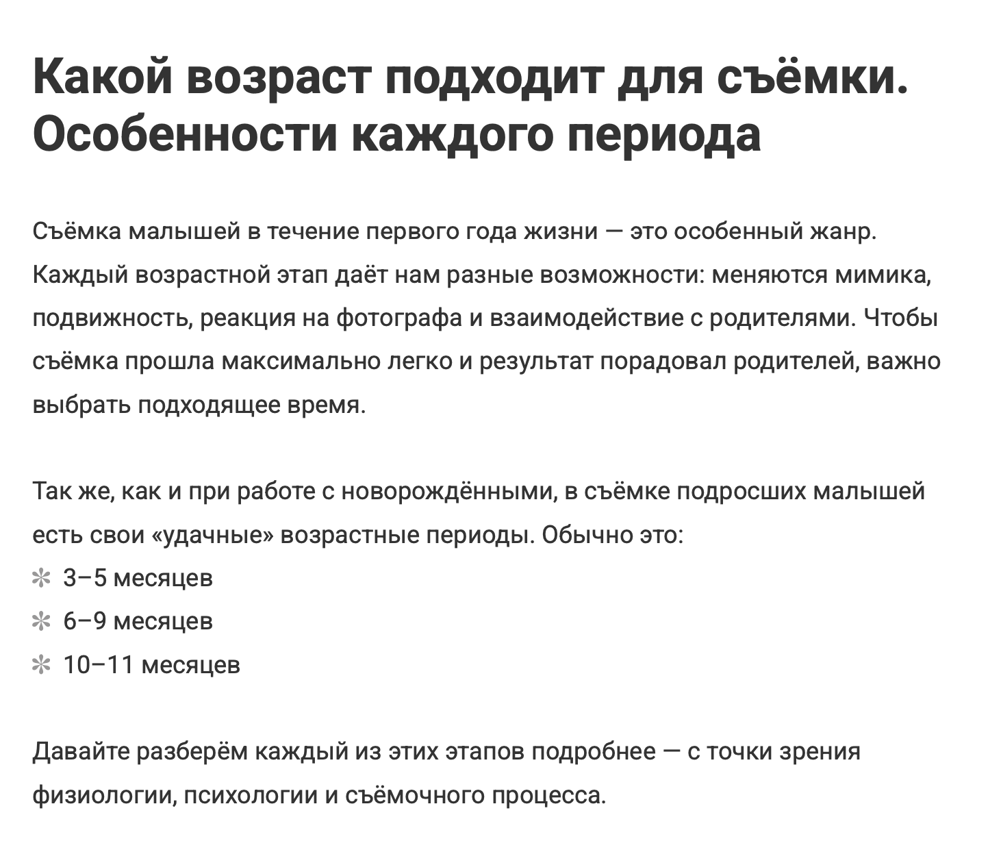 Оглавление | 1. Какой возраст подходит для съёмки. Особенности каждого периода |