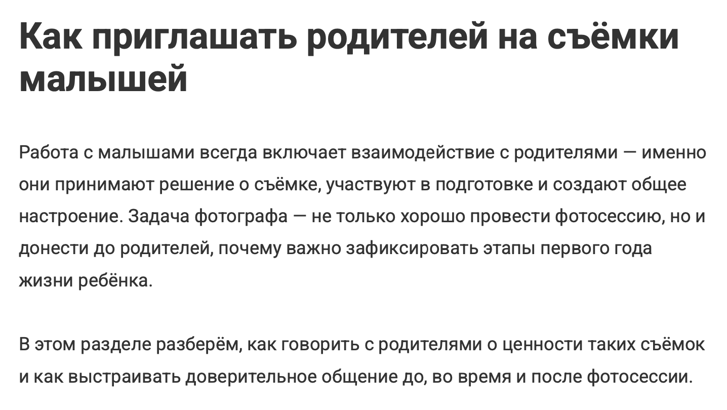 тех, кто хочет наладить процесс съёмки малышей и уверенно вести клиента
